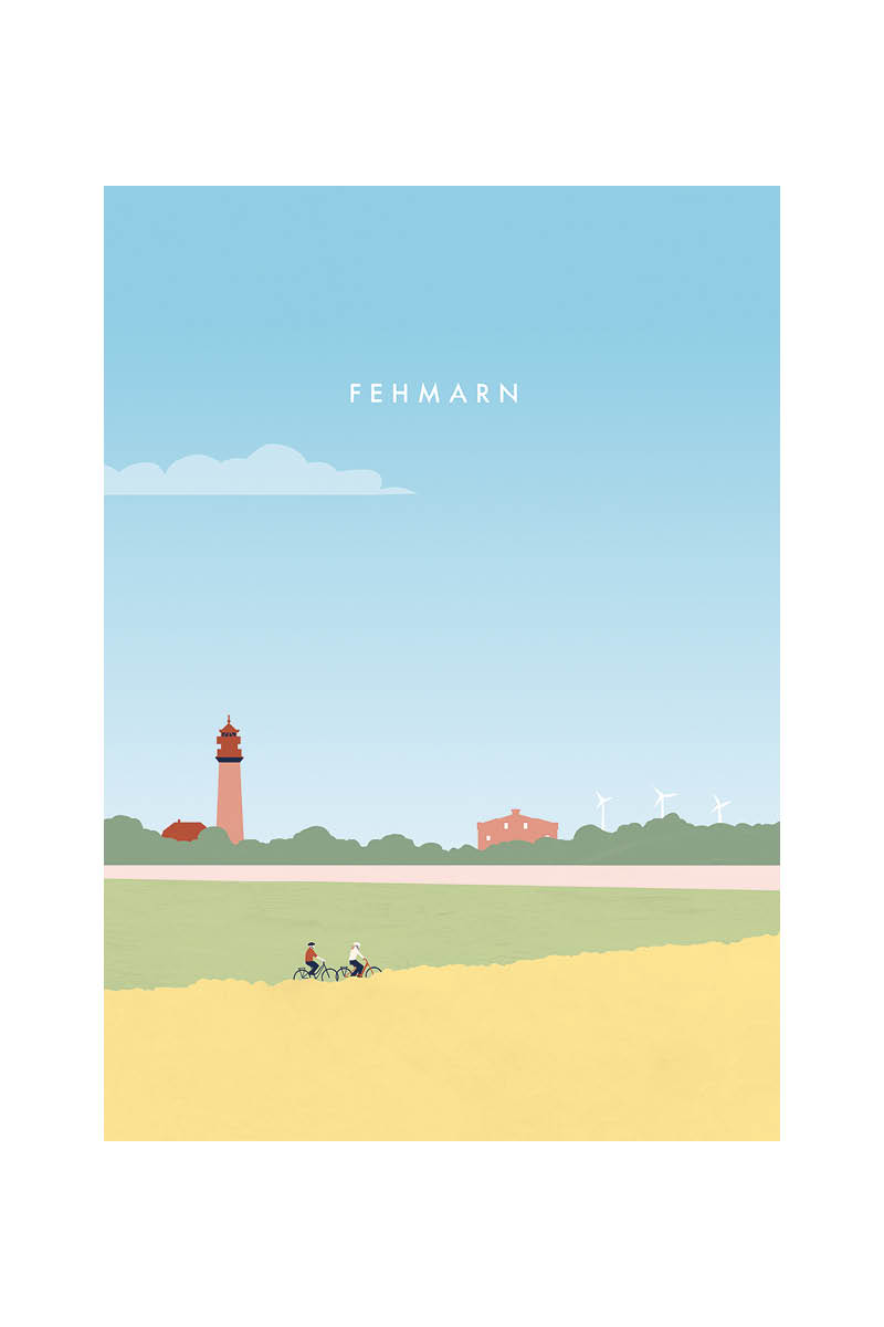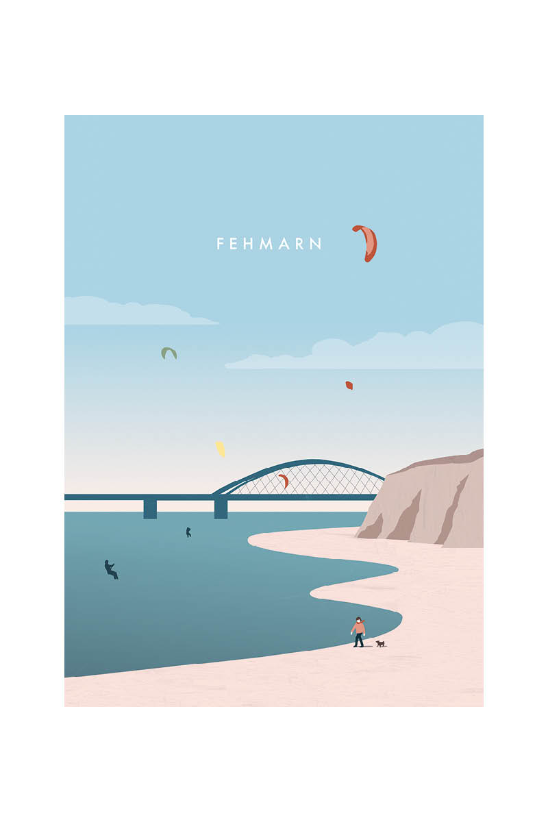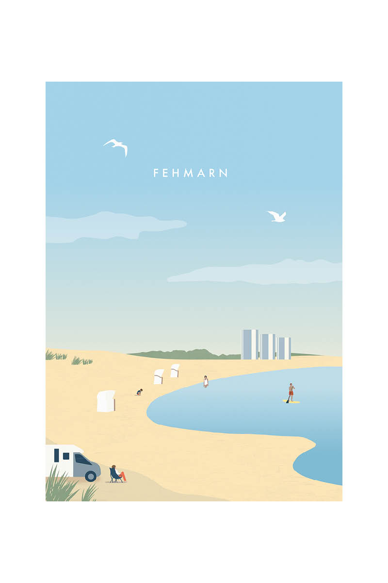Mit den minimalistischen, cleanen und modernen Fehmarn Illustrationen holen Sie sich Ihre Lieblingsinsel direkt nach Hause – ob als Urlaubs-Erinnerung im Wohnzimmer, als stilvolles Wandbild in der Ferienwohnung oder als Farbtupfer im Büro. Die Hamburger Illustratorin Katinka Reinke hat exklusiv für den Tourismus-Service Fehmarn drei Motive entworfen, die typische Fehmarn-Momente und bekannte Insel-Highlights aufgreifen. Dank der harmonisch aufeinander abgestimmten Pastelltöne werden die Kunstwerke zu echten Hinguckern – dezent, aber unverwechselbar.